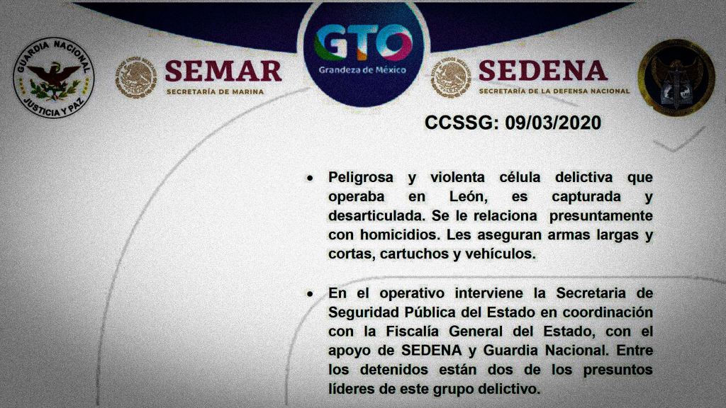 El pasado lunes 9 de marzo, la Secretaría de Gobierno dirigida por Luis Ernesto Ayala Torres emitió un comunicado de prensa que se hubiera entendido mejor si la responsable hubiera sido la Fiscalía General del Estado: la noticia era la captura de una «peligrosa y violenta célula delictiva que operaba en León».